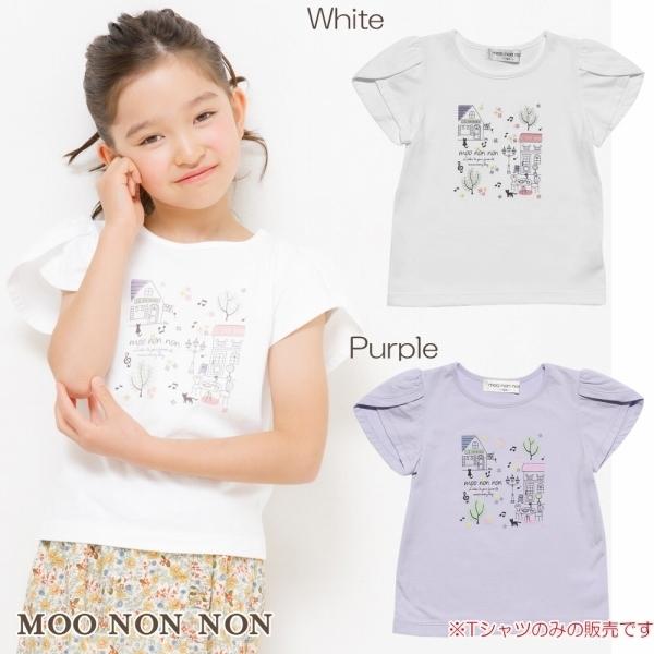 子供服 女の子 Tシャツ 半袖 普段着 通学着 綿100 チューリップ袖オープンカフェイラスト オフホワイト パープル むーのんのん Moononnon Moononnon 通販 Yahoo ショッピング